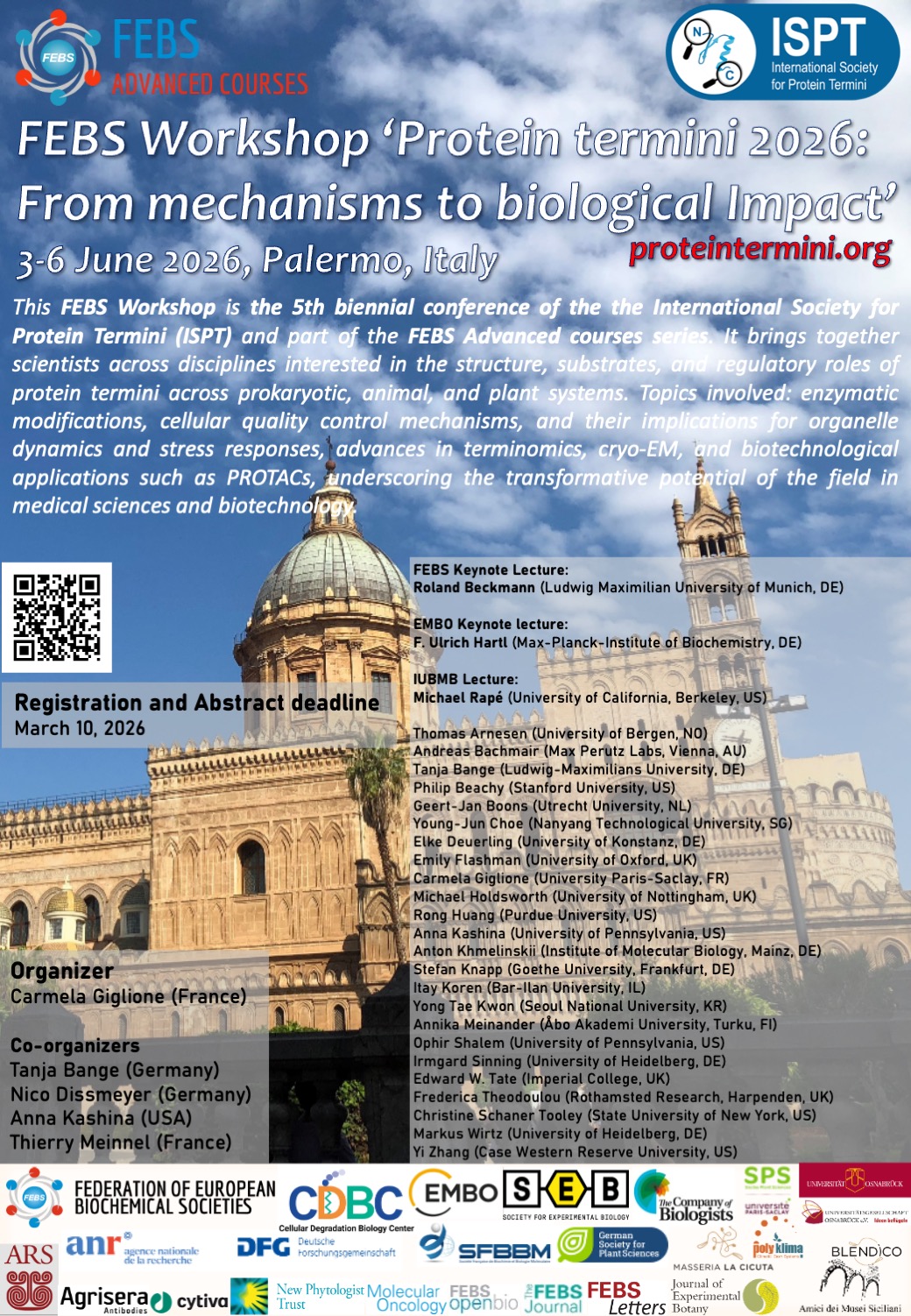 The 5th biennual meeting of the International Society for Protein Termini (ISPT), will be held this time in beautiful Palermo on the island of Sicily in the south of Italy under the umbrella of FEBS as a Workshop within the FEBS Advanced Courses programme!